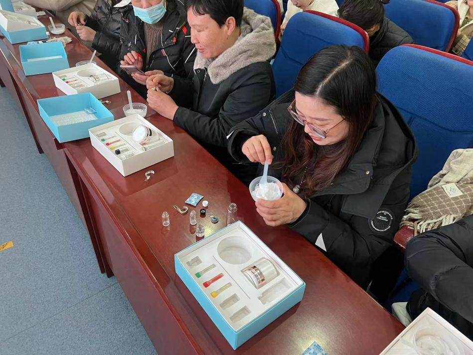 活动邀请了容盛公司高级督导高级讲师杨晓慧为大家讲解实用的日常护肤知识。活动中,老师首先针对不同皮肤类型的护理方式、问题肌肤的改善方法、护肤品的选择等进行了专业讲解,与现场在座的女教职工分享了一些日常护肤小窍门,邀请全体女教职工进行现场手工DIY护肤品体验。参加活动的女教职工不时提出问题,解决自己在护肤方面的疑问,她们认真制作DIY、仔细聆听讲解,增强对皮肤管理、职业妆容的了解。