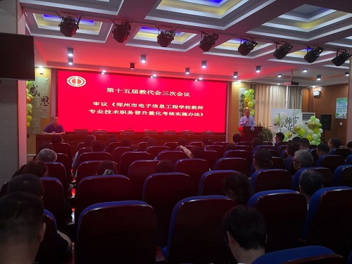 2025年9月9日郑州市电子信息工程学校第十五届教职工代表大会三次会议顺利召开,此次会议聚焦教师专业技术职务晋升,审议《郑州市电子信息工程学校教师专业技术职务晋升量化考核实施办法》文件。
