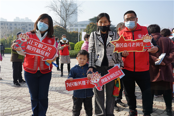 郑州市电子信息工程学校志愿服务队与河南星火志愿团、建设路街道“市民说”志愿者服务队等多个志愿服务队一起向群众宣传《郑州市文明行为促进条例》手册,发放了600多个一次性医用口罩等防疫物资,让更多的群众熟悉和了解社会主义核心价值观和文明市民的行为标准,营造争做文明市民的良好氛围。并向群众开展调研问卷征集,收集群众对文明行为好的建议和意见,从而更好的推动我们文明实践活动的开展。并倡导大家发扬“为民服务孺子牛、创新发展拓荒牛、艰苦奋斗老黄牛”的“三牛精神”,激励全民永远保持慎终如始、戒骄戒躁的清醒头脑,永远保持不畏艰险、锐意进取的奋斗韧劲。活动受到了现场群众的热烈欢迎和积极响应参与。郑州市委宣传部副部长裴保顺、市文明办文明促进处处长贾书亚到活动现场观看指导并为现场的志愿者点赞。