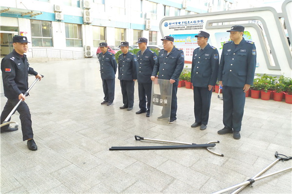 为进一步加强校园安全管理,提高安保人员安全责任意识和业务技能,11月14日,郑州市电子信息工程学校开展了安保人员技能培训练兵活动。