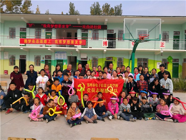 郑州市电子信息工程学校戏曲社及党员志愿者将精彩演出带到荥阳市乔楼民族小学