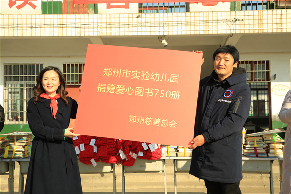 (郑州市实验幼儿园党总支书记张莉通过郑州慈善总会向刘家沟小学捐赠了750册绘本和图书)