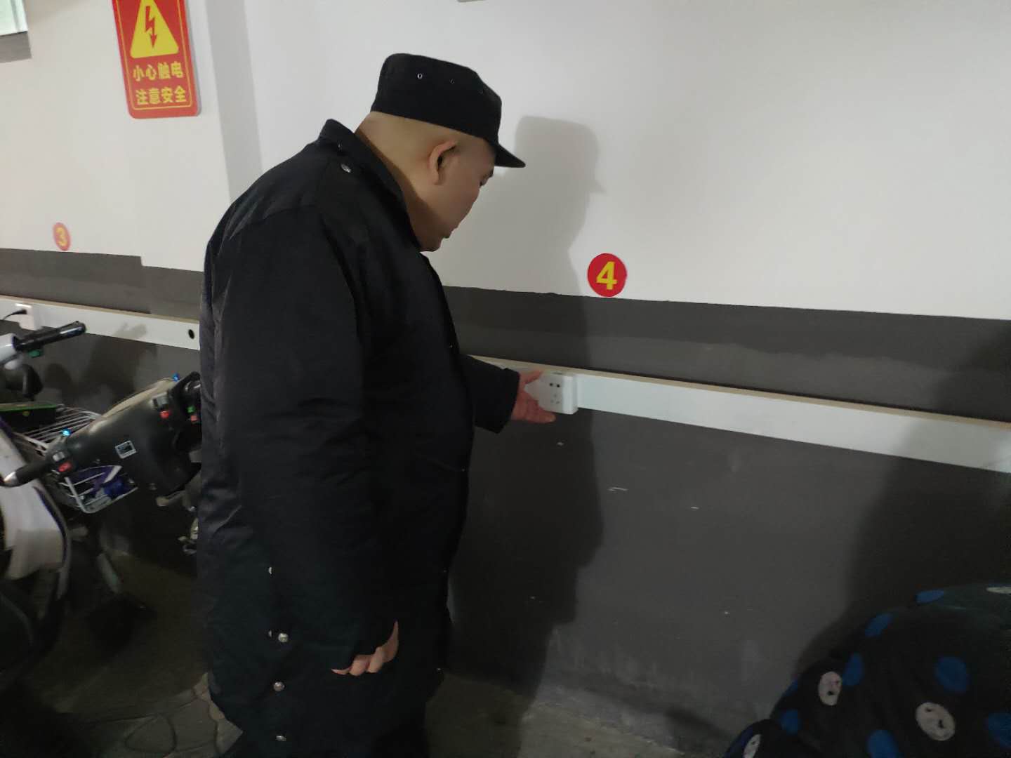 20日上午,郑州市电子信息工程学校综治办主任苗畬带领着校园安保人员来到学校地下停车处,实地检查了电动车停放处安全措施是否完备、充电中的电动车充电器是否有安全隐患、电气线路铺设是否符合规定等情况。