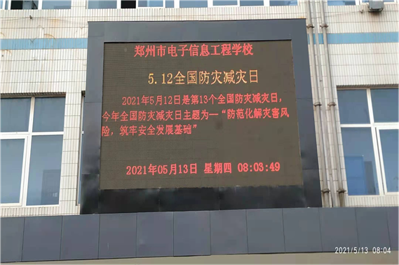 学校通过电子屏幕宣传并循环播放第13个防灾减灾日主题教育,让防灾减灾入脑入心。
