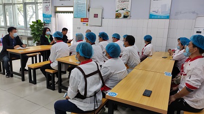 首先,总务处教师邱峰对《郑州市电子信息工程学校食品安全及营养健康管理制度》和《郑州市电子信息工程学校食堂管理处罚条例》中的具体规定进行了详细说明,对近期食堂管理方面存在的不足进行了通报,他提醒食堂从业人员要认真学习食品安全知识,严格按照食品加工规范化操作,增强安全意识、服务意识、责任意识,确保师生“舌尖上的安全”。