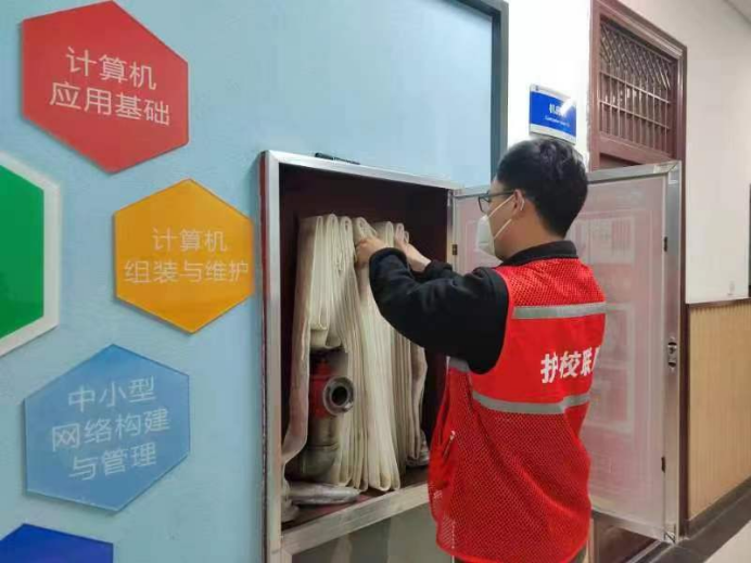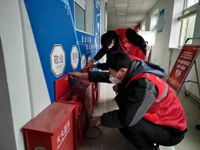 排查小组检查校园消防微型站
