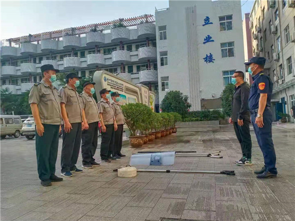 随后,安保公司的教官对我校安保人员进行了队列、盾牌、警棍、钢叉、消防设施使用等多个方面展开了培训。在培训中,全体参训人员态度端正,训练认真,动作规范、整齐,练出了精气神。训练结束后,综治办立即组织安保人员进行实战演练,我校安保人员利用器械顺利制服了由老师扮演的“暴恐分子”。演习结束后,结合近期校园安全情况,安保组副组长苗畬强调了学校安全保卫工作的重要性。他充分肯定了保安队伍为平安校园所做出的工作贡献。并对本次国赛期间安保工作做出了明确的要求。