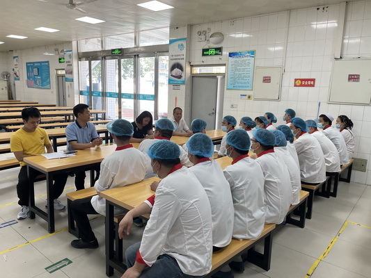 辛云昌主任则强调了食品安全与食品卫生两个重点,要求日常从采买、验收环节严格把关,标准没有上限,不仅注意环境卫生、厨具卫生,对着重要求也丝毫不能放松,全程严格把控烹调加工过程,确保食品烧熟煮透,加工后的成品和半成品、原料分开存放,避免交叉污染。