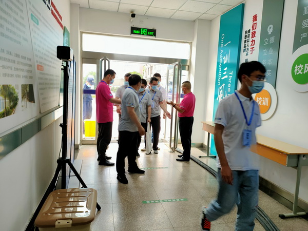 李富森老师在酷热的天气下圆满完成对辅导老师们的测温