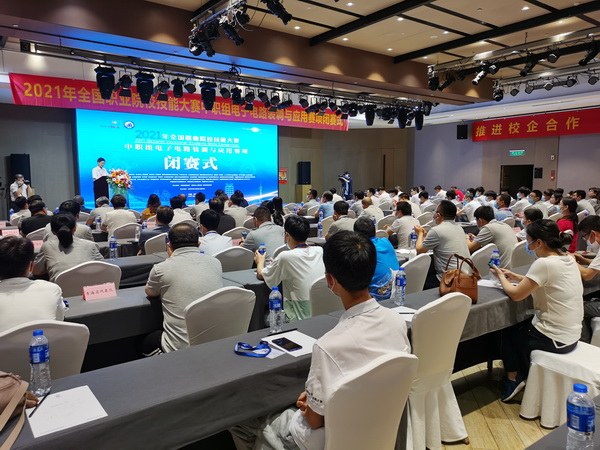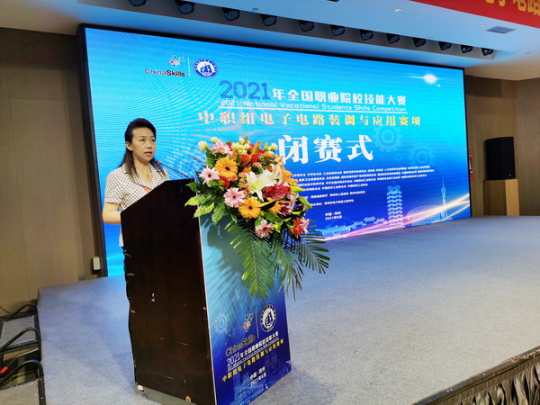 河南省教育厅职成教处处长秦剑臣主持2021年全国职业院校技能大赛中职组电子电路装调与应用赛项闭赛式