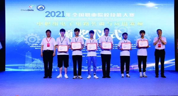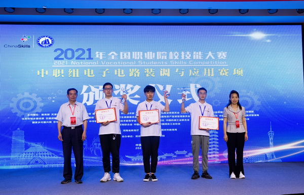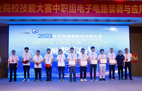 6月13日,2021年全国职业院校技能大赛中职组电子电路装调与应用赛项闭赛式在郑州举行。该赛项由河南省教育厅、郑州市人民政府和郑州市教育局承办,郑州市电子信息工程学校协办,共有来自全国各省(市)、自治区的31支代表队参加了比赛。河南省教育厅副厅级督学吴廷伟、郑州市人民政府副秘书长李慧芳、郑州市教育局局长王中立等领导出席闭赛式,并为获奖选手颁奖。河南省教育厅职成教处秦剑臣主持。
