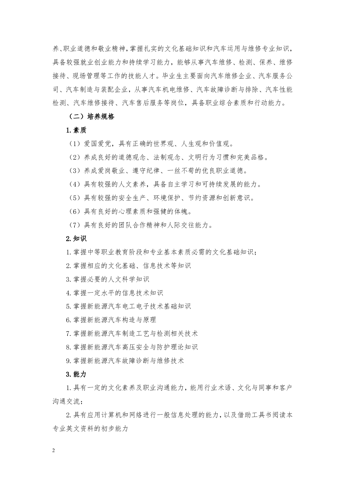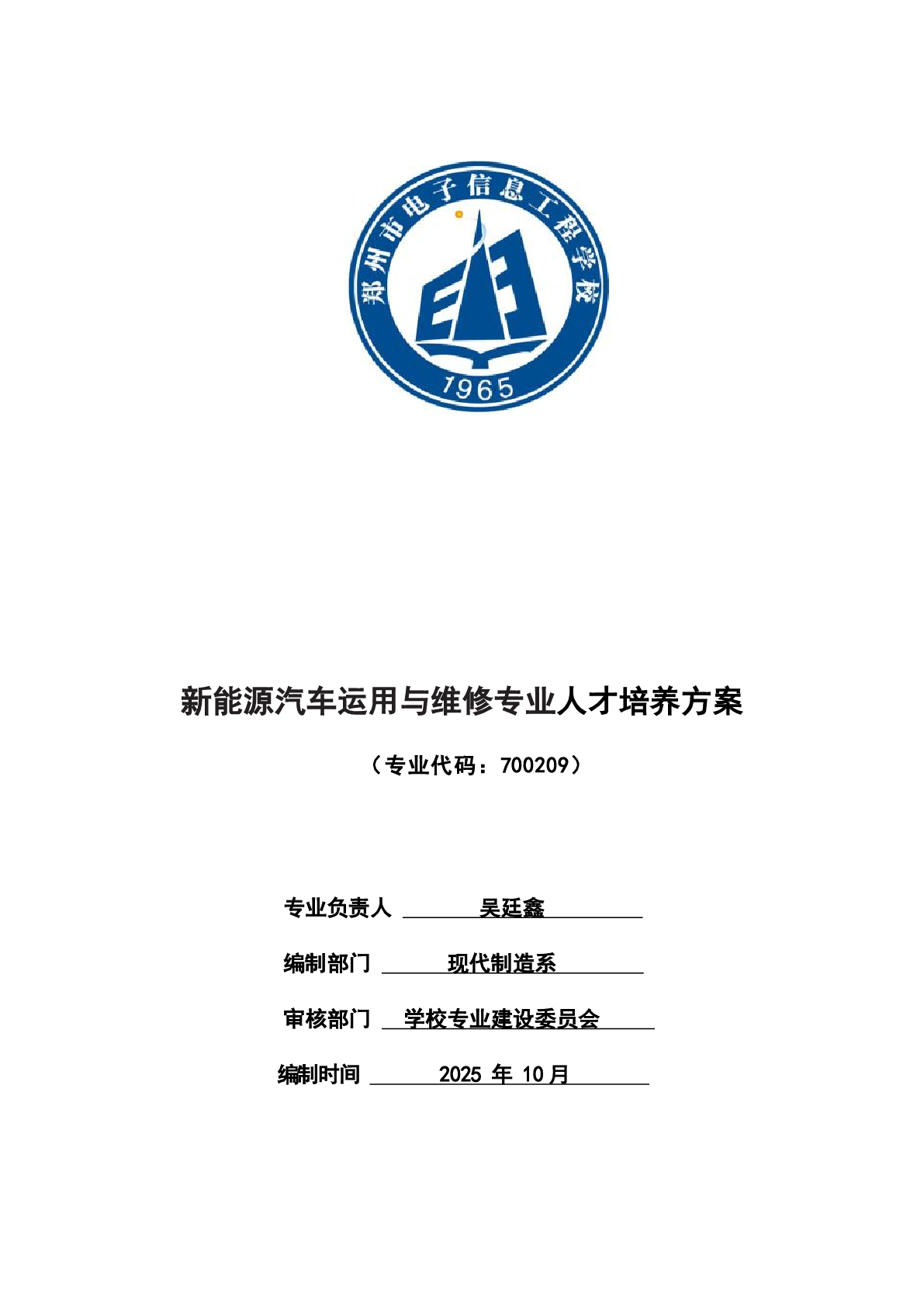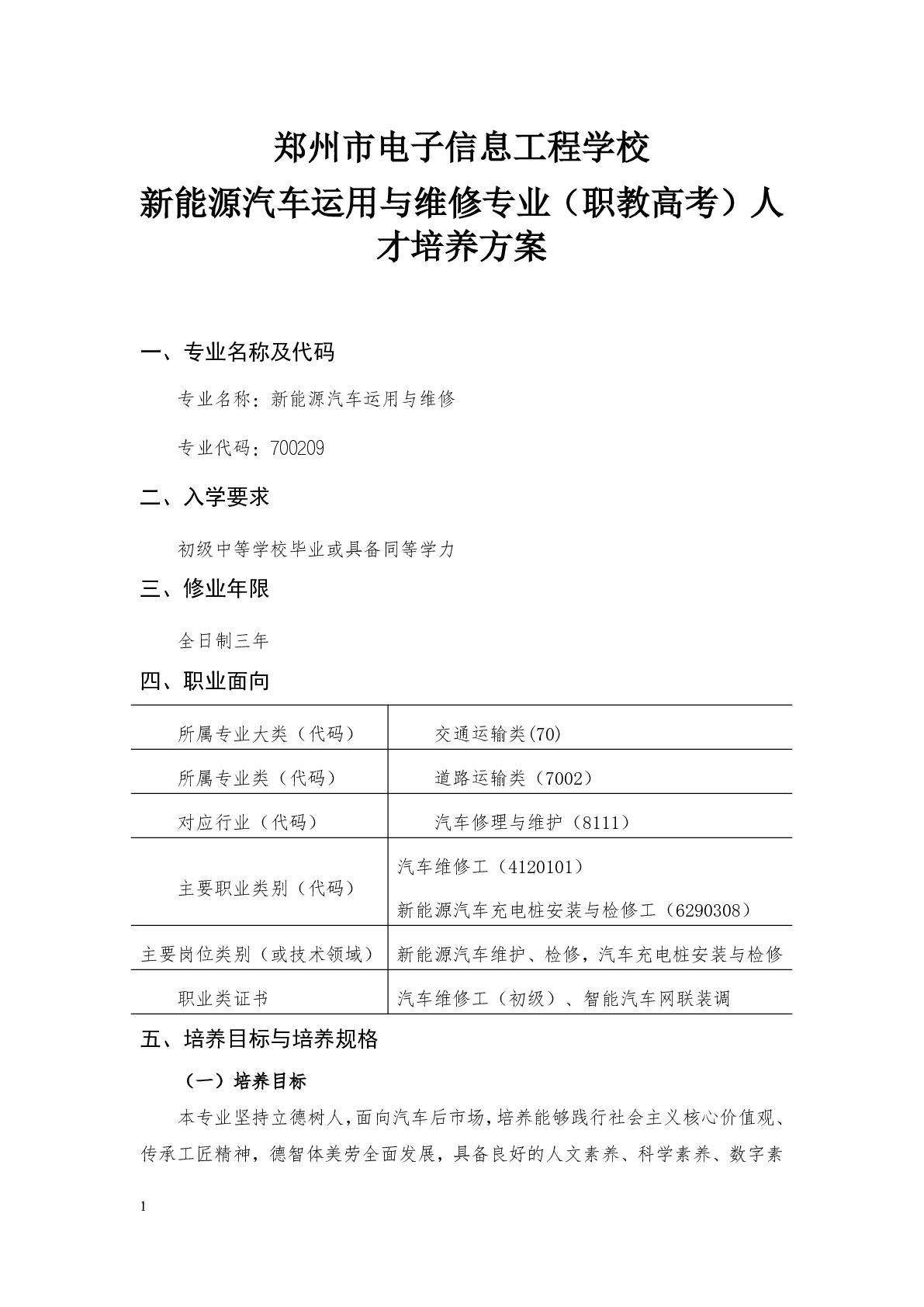 新能源汽车运用与维修(职教高考)专业人才培养方案(2025)