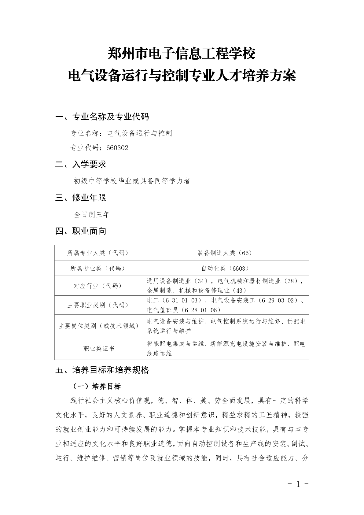 电气运行与控制专业人才培养方案(2025)