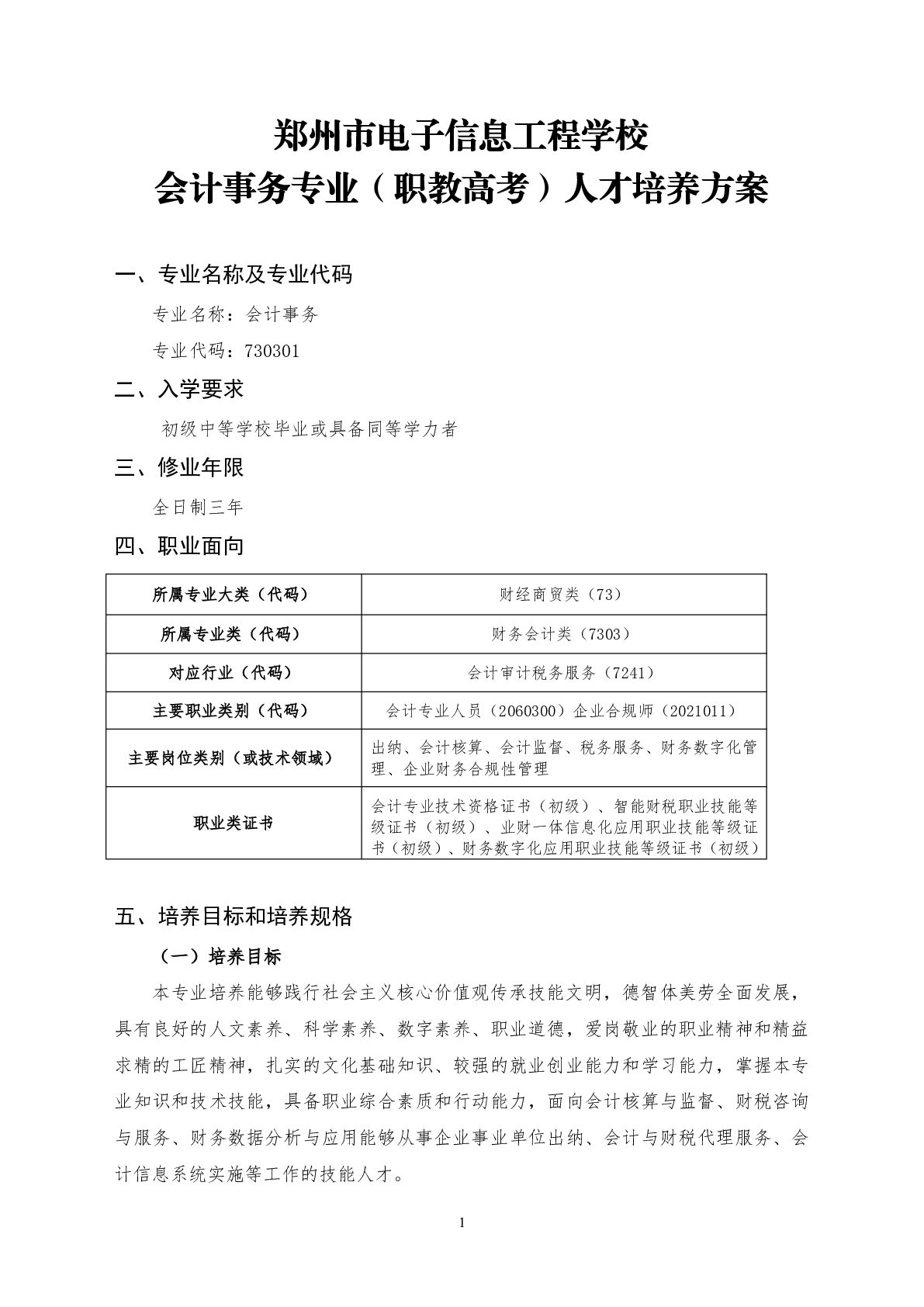 会计事务专业(职教高考)人才培养方案(2025)