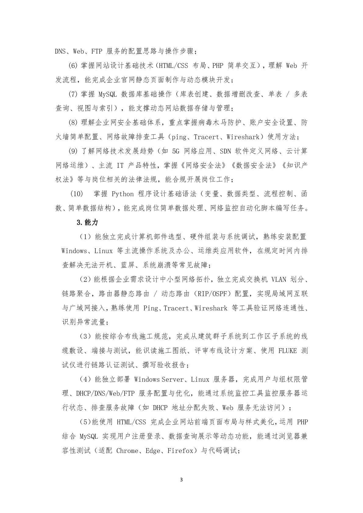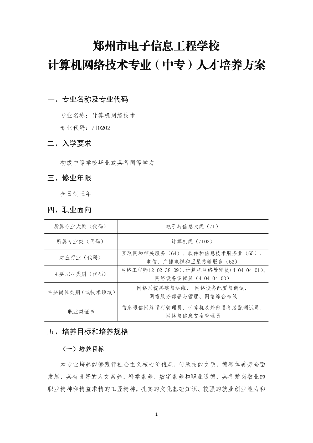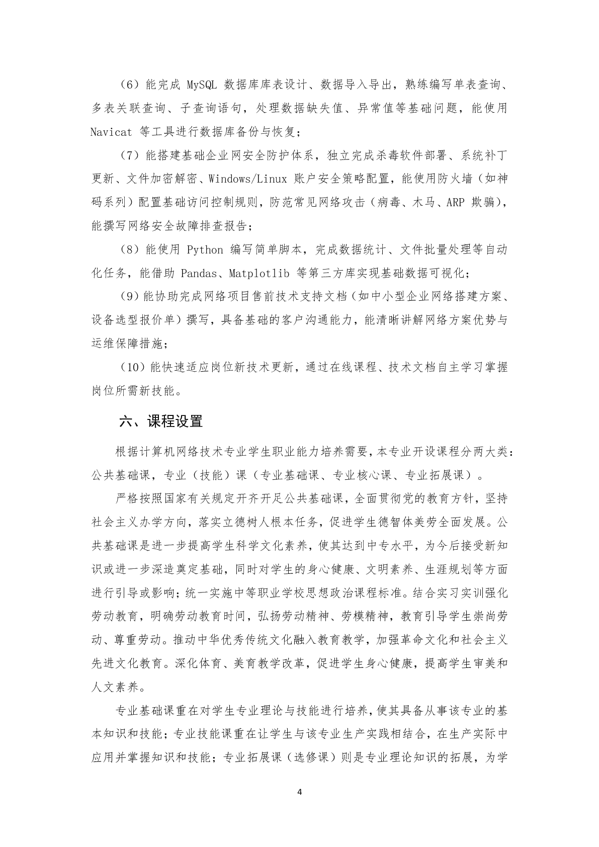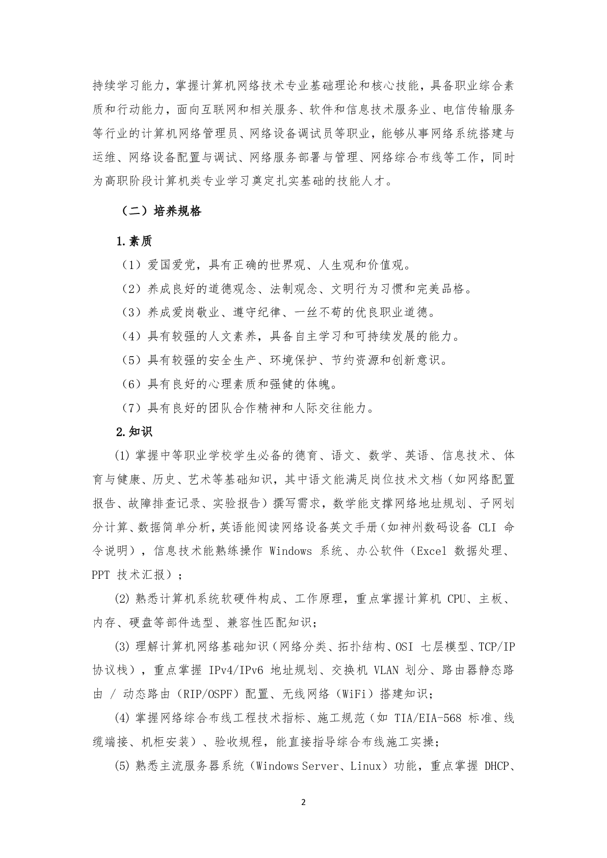 计算机网络技术应用专业(中专)人才培养方案(2025)
