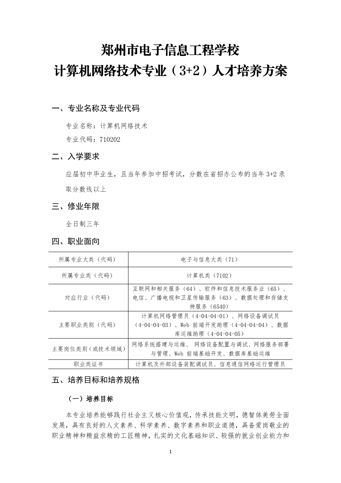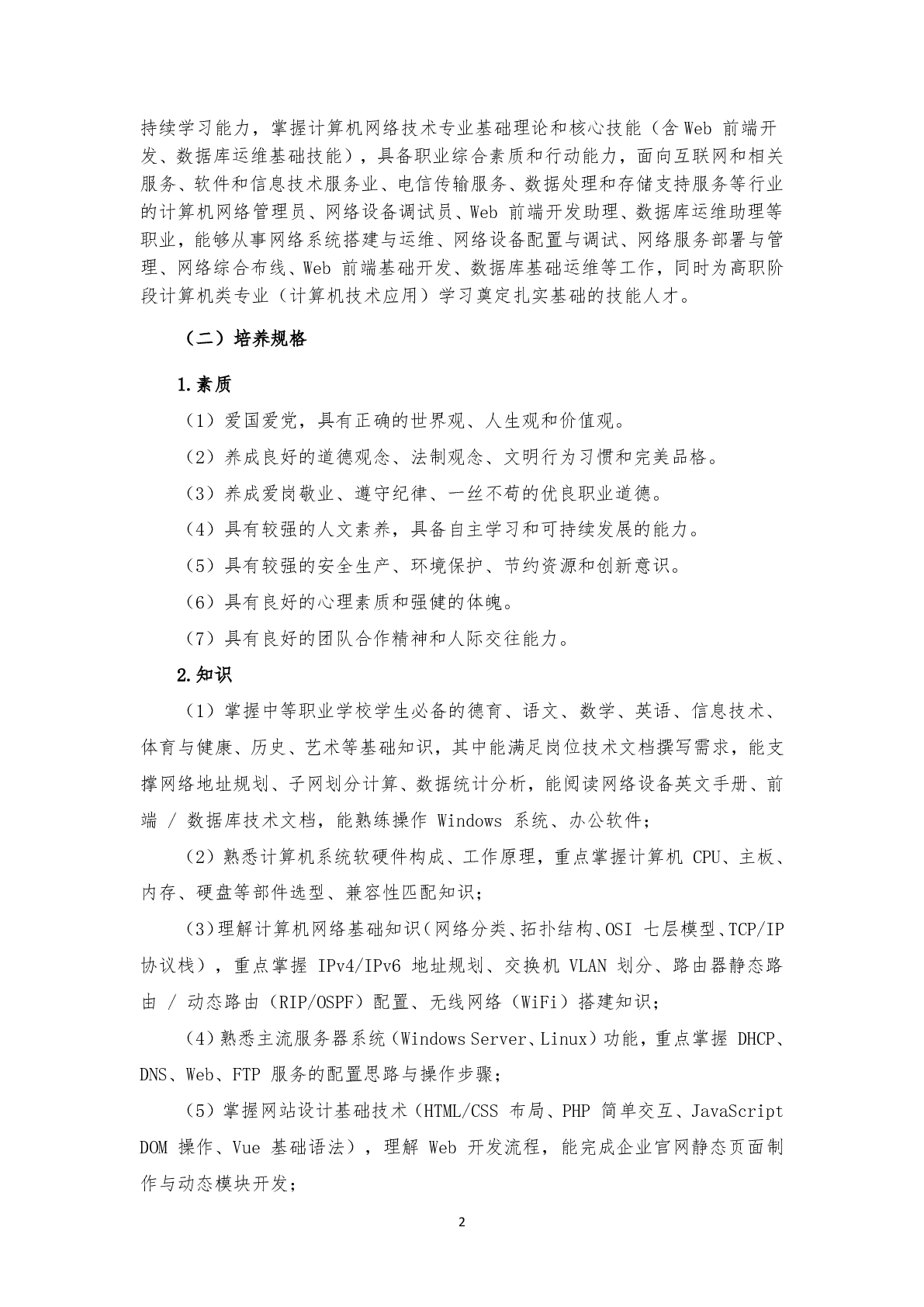 计算机网络技术专业(3+2)人才培养方案(2025)