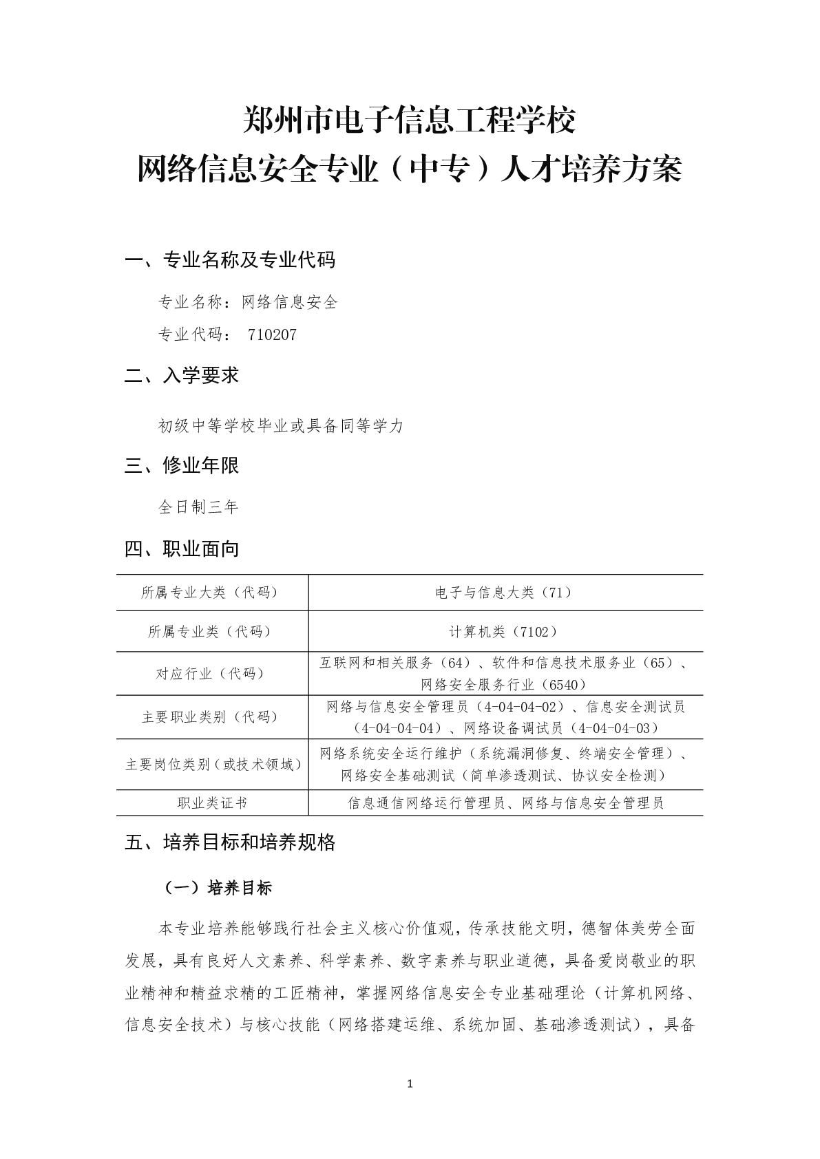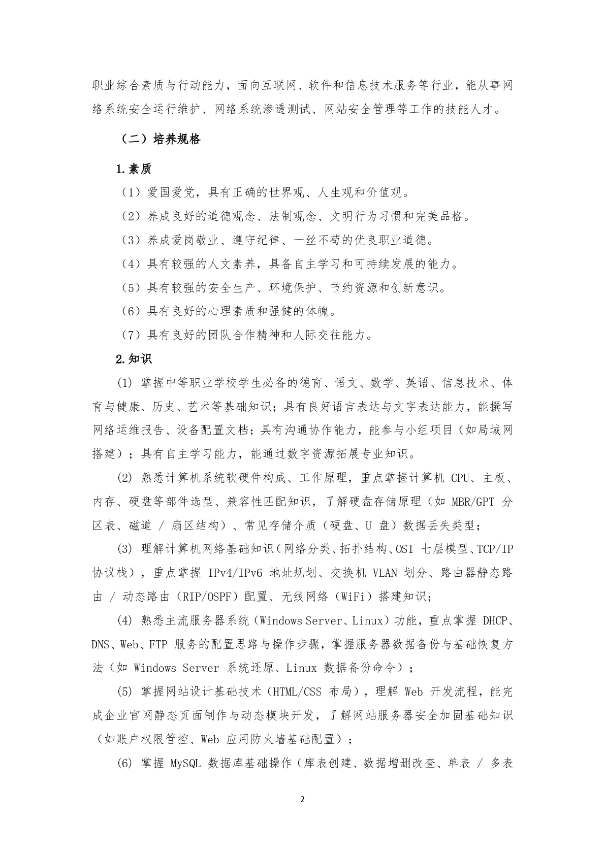 网络信息安全专业人才培养方案(2025)