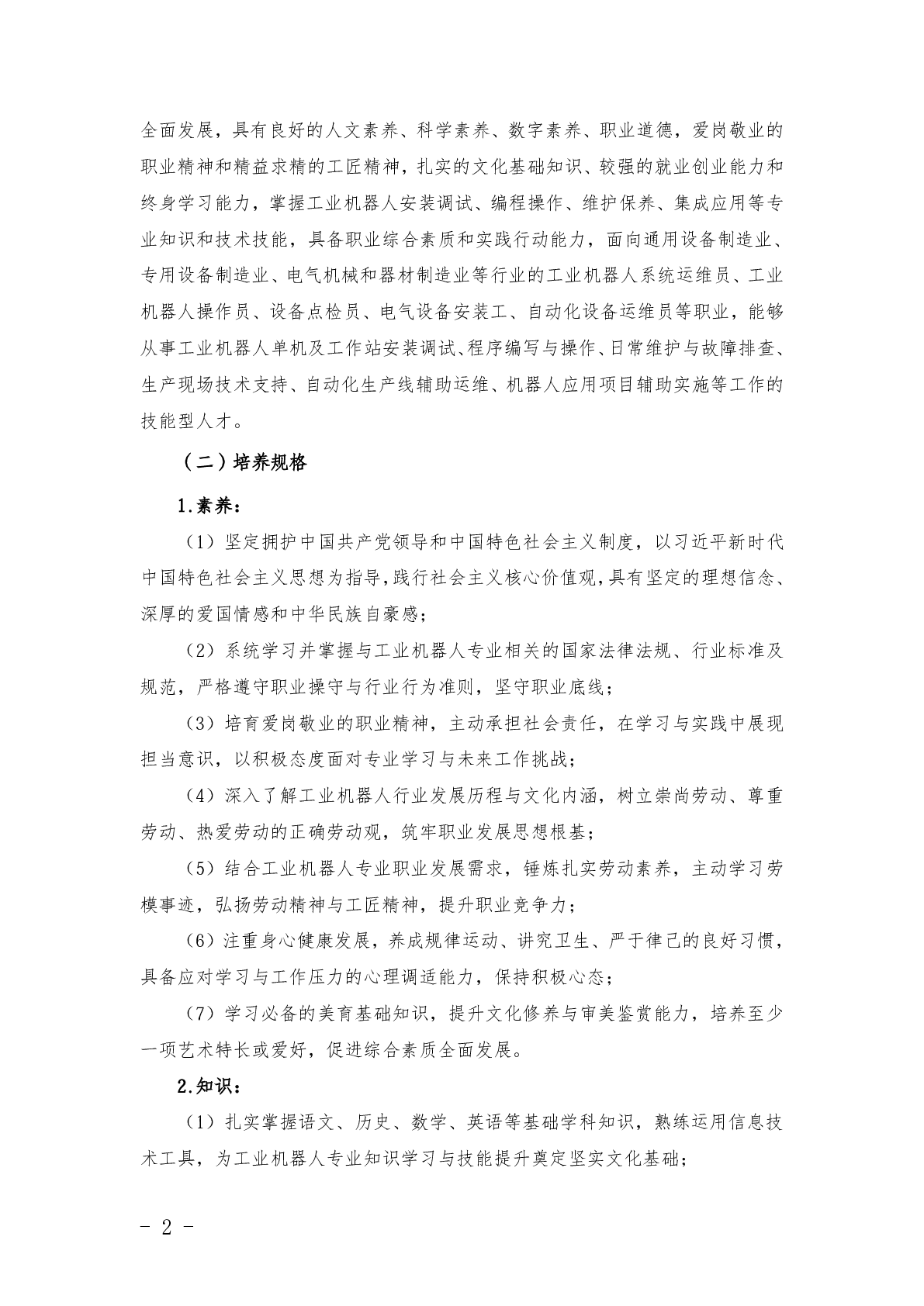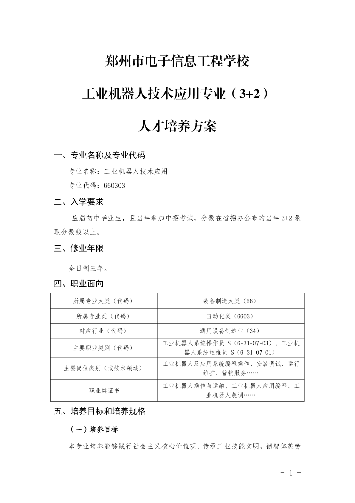 工业机器人技术应用专业(3+2)人才培养方案(2025)