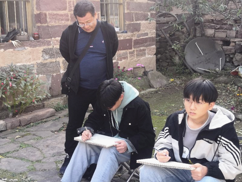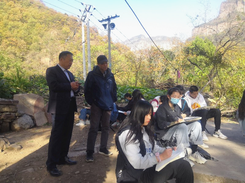 10月22日,是写生的第四天,为了鼓舞广大师生,校长李京辉、副校长焦火锡、办公室主任杨燕敏,教务处主任席明闰,亲临石板岩写生基地看望大家,并指导工作。