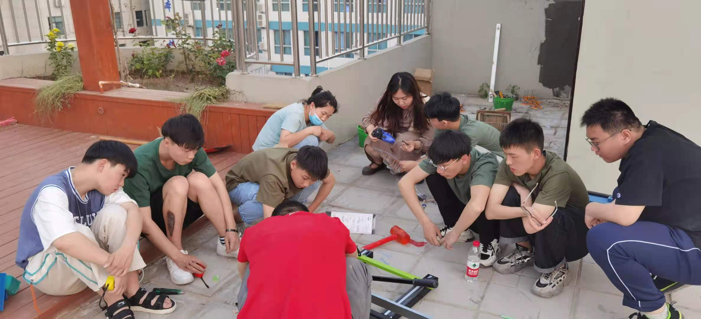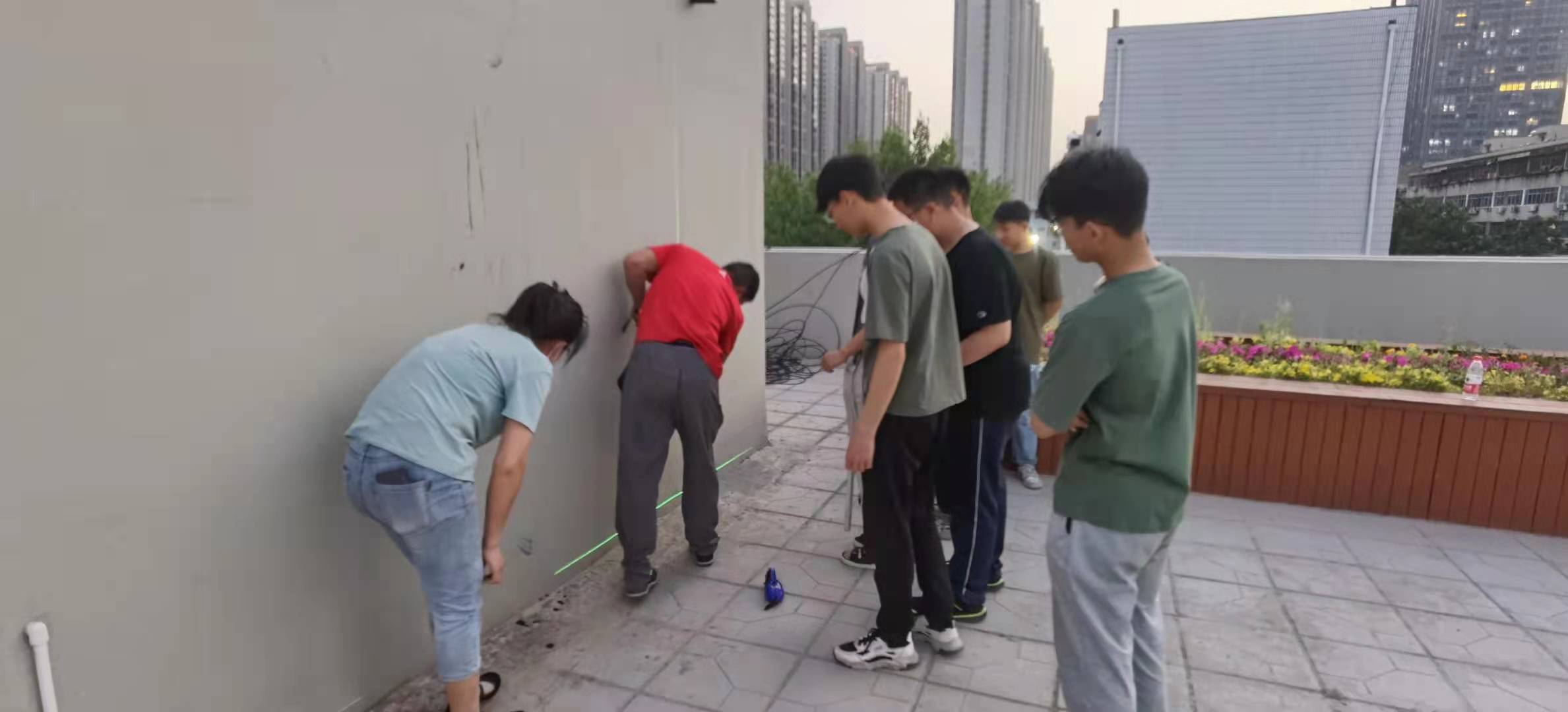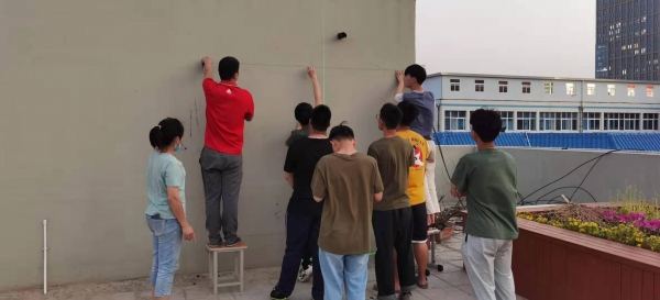 5月29日,建筑装饰专业的学生在杨帆老师的带领下,诚挚聘请了有着丰富经验的专业贴砖师在学校立业楼楼顶进行贴砖训练。