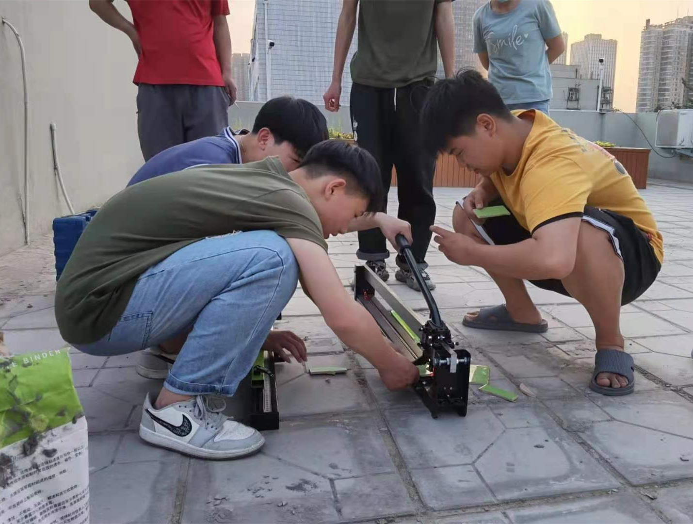 大家的学习热情都非常高,每一片瓷砖的贴合操作都体现着一个“匠”字,学生通过这次贴砖实训,纷纷表示,这项工作看似很简单,但需要一种超强的耐心和毅力,需要坚持,需要精准。
