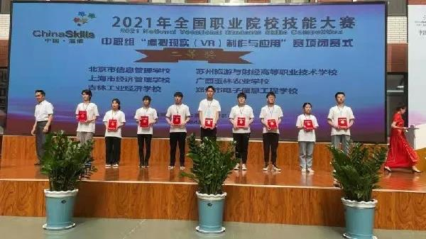 6月21日,2021年全国职业院校技能大赛中职组“虚拟现实(VR)制作与应用”赛项在淄博闭赛,代表河南省参加该项目的比赛的郑州市电子信息工程学校的选手朱悦宁(女)、刘硕、赵峥璐,在指导教师周乐生、刘刚的辅导下,团结协作、相互配合,最终在29支代表队中突出重围,荣获团体二等奖。