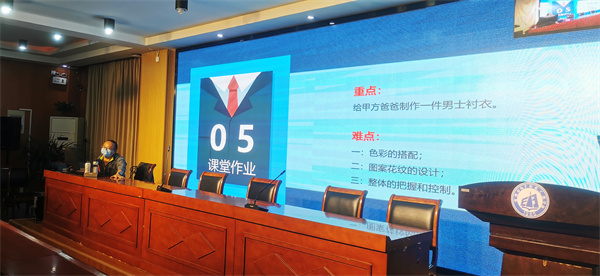讲座最后王老师给同学们留下了一个“作业”,希望通过设计一件衬衣,开拓学生设计思维的同时为自己穿上一件合身的衬衣!讲座尾声,师生进行了有趣的现场互动,同学们就未来专业市场就业前进和未来专业发展方向提出问题,王老师耐心给出了专业的回答,讲座结束,很多同学留下了王老师的联系方式,要求加强联系。