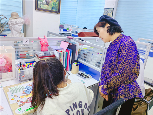(解华书记观看学生创作过程)