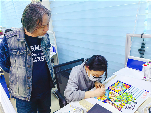 这次诚邀胡羊主席和解华书记也是为了全力以赴支持大赛工作,为大赛训练提供优质指导资源。胡羊主席针对学生们的训练作品,一张一张地进行了耐心分析,他说,手绘是人类表达美最原始,最直接的方式。绘画不仅仅是创作,更要与“工匠精神”相结合,从细节上做到一丝不苟。接着,他讲解了点、线、面的表现技巧,指出手绘的表现技法,不可一味模仿,只有多练、多积累,才能达到娴熟,自成风格。之后,解华书记与学生们亲切地交流,又询问了师生在训练期间的训练情况,倾听学生们的专业需求。