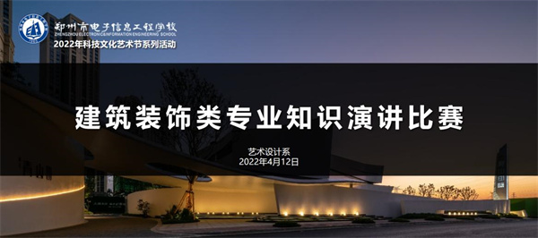 为了促进学生专业知识及综合能力的提升,丰富学生专业知识学习的兴趣,积极参与我校2022年科技文化艺术节,我系于4月12日开展以“建筑装饰专业知识”为主题的演讲比赛。本次活动得到了校领导重视,艺术系周乐生主任、数字影像工作室主持人李芳老师、建筑装饰专业杨帆老师、建筑装饰专业2038班班主任彭莹志、2136班班主任黄译元老师,作为评委参加活动。我系建筑装饰专业及实训室34名学生积极参赛,认真准备。活动通过各班钉钉及微信视频号方式进行了全程直播,受到了全校各班学生及家长的广泛关注,为大家带来了一场精彩的专业知识视听盛宴。