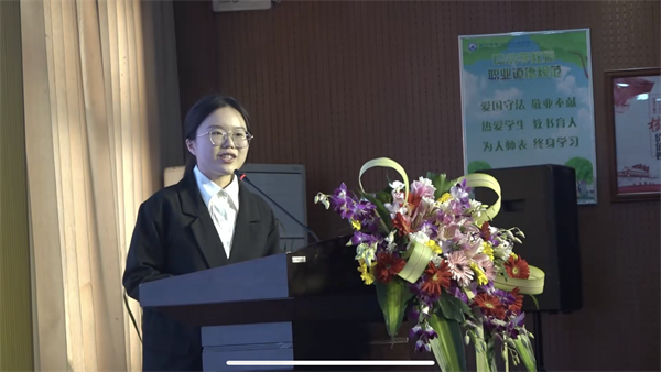 担任专业课教学任务以及22级班主任的王聪慧老师,演讲的《平凡之路,必有担当》,情感真挚,感人至深。一字一句无一不在倾诉着教育的初心,传承教育信念,她热情洋溢的演讲,最终荣获一等奖的好成绩。刘刚老师的《匠心筑梦,文化强国》不忘立德树人,牢记使命,立志为学校立好招牌专业,为社会培养更多优秀的艺术技能人才。