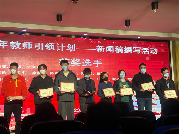 2023年3月9日下午,我校在大会议室召开青年教师赛项表彰会。各校级领导与教职工齐聚一堂,为青年教师引领计划获奖选手进行表彰并颁发证书与奖品。我系青年教师在从此赛项中,表现突出,成绩斐然,展示了他们个人过硬的教学能力,扎实的基本功,以及多才多艺的本领。
