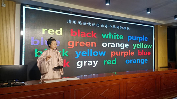 整场讲座不仅讲解了汉服和团扇的知识,还通过游戏互动、对话展示、视频欣赏、有奖竞答、彩蛋来袭等方式灵活地把相关的英语知识传授给学生。现场的同学们听地津津有味、收获满满,度过了一个特殊的、难忘的时光。学生们没想到老师会穿汉服来做讲座,更没想到通过这样“穿越”式的展示方法讲解中国传统文化,纷纷表示,老师这样的上课方式很新颖,代入感很强,有勇气、有创新,带给了校园新的气息。不仅加深了同学们对传统文化的认识,也增强了文化自信、民族自信。罗菲老师将中华优秀传统文化融入到立德树人的教育实践中,引导学生感悟中华优秀传统文化的精神内涵,增强了学生对中华传统文化的自信心,让博大精深的中华文化继续发扬光大。特此英语组带来了一场中英文版的沉浸式的中华传统文化之旅。