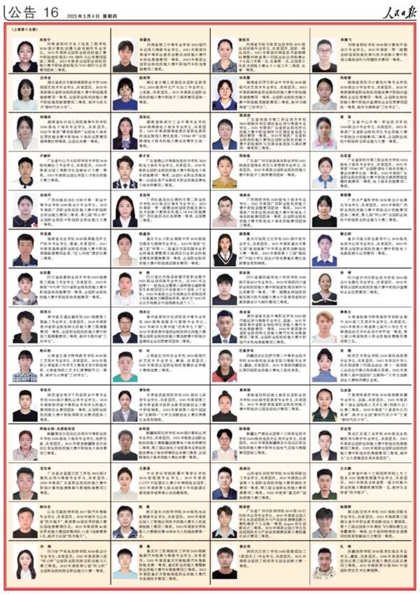 2021-2022学年度中等职业教育国家奖学金经过严格选拔和评审,在全国2万名优秀中职学生荣获国家奖学金中又评出100名国家奖学金优秀学生代表。我校学生朱悦宁在2021年、2022年连续两年荣获全国职业院校技能大赛二等奖,成绩突出,模范作用显著,被选入2021-2022学年度中职国家奖学金优秀学生代表名录。希望全校各专业、各班级以朱悦宁为榜样,刻苦学习文化知识,熟练掌握专业技能,努力成长为时代需要的能工巧匠、大国工匠。