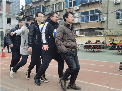 按照比赛规则,系里10名男教师分为两组接力参赛(1组:吴廷鑫,张靖辉,陈文龙,张斌,宋庆彬;2组:葛硕硕,薛帅,陈卓,时子超,陈昊)。小组赛中,我系代表队以较大优势战胜信息技术系代表队。决赛中,虽然在起步时落后于行政处室代表队,但我系参赛男教师沉着冷静,保持节奏,最终在返程中,反超对手,赢得比赛第一名。