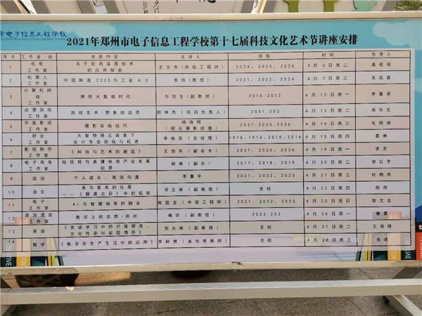 本次讲座是我校2021年第十七届科技文化艺术节系列讲座的首场,紧随而来的还有河南职业技术学院李伟教授于4月7日带来的题为《AI人工智能与机器人技术》的讲座。这些专家讲座以不同方面的科研内容展现了各自领域的最新成果,不仅拓展了学生们的专业视野,也为他们进一步有目标地提升个人综合素养起到了指导作用。