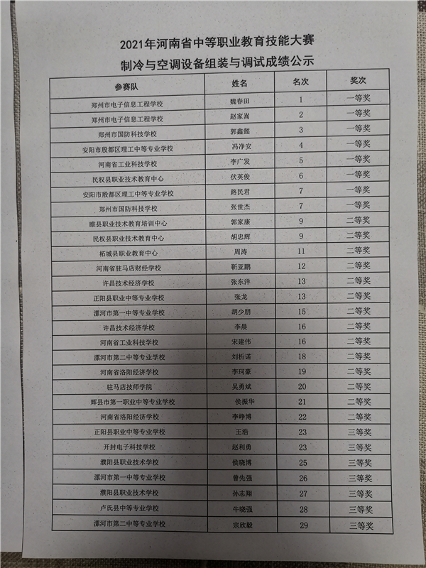 秋风送爽拂汗水,艳阳增辉映奖杯。10月16-17日,省赛制冷与空调设备组装与调试赛项(以下简称制冷赛项)和电气安装与维修赛项(以下简称电气赛项)在郑州市电子信息工程学校鸣锣,省内五十一所学校派队参赛,一百二十九名选手同台竞技,一展我省中职师生风采。