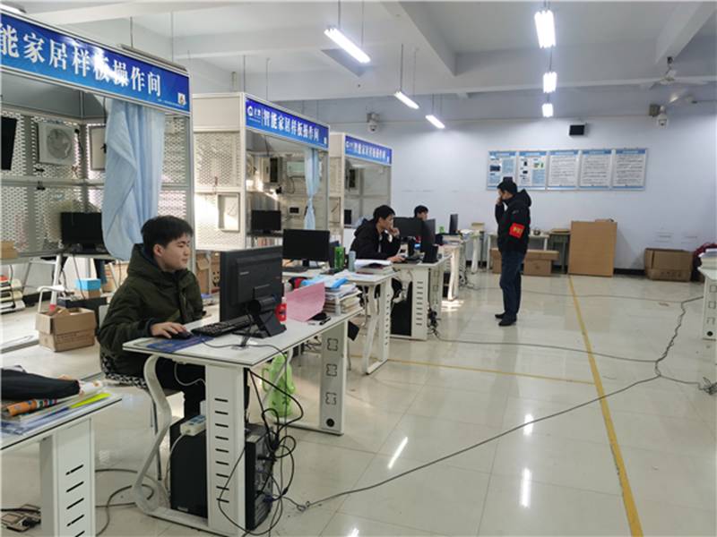清水洗漱,食堂打饭,餐后很快进入各自的实训位置,每个实训室的选手都是如此。当日值班的李向伟副校长记挂着师生们,当他来看望大家时,看到的是安静训练的日常——没有人玩手机,只有人玩程序;没有人撸游戏,只有人撸管线;没有人听音乐,只有人听讲解。走访中,他问及师生们备战国赛的情况,得知同学们一直按照计划踏实训练,老师们也会调剂进度劳逸结合。用备赛选手小李同学的话说:“一届学生备赛两年,一年备赛365天,我们坚持训练,就是为了用努力和期待来度量光阴,度量自己有没有不负青春。”