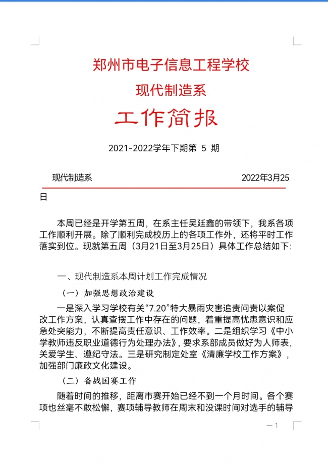 现代制造系工作简报-5