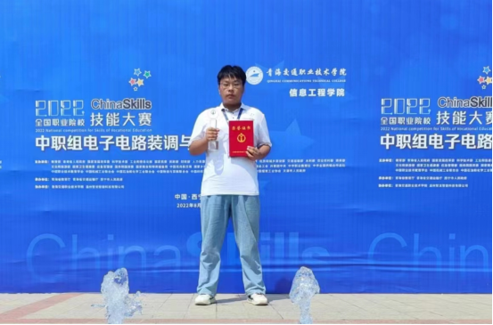 2022年8月6日,在指导教师李良、刘伟、苑锋的指导下,现代制造系国赛选手谢俊航荣获国赛“电子电路装调与应用”赛项一等奖。