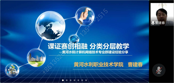 会议还特别邀请了黄河水利职业技术学院曹建春教授进行了题为:“课证赛创相融、分类分层教学”人才培养模式的讲座,曹教授结合黄河水利职业技术学院计算机网络技术专业群建设进行了经验分享,全体成员受益匪浅。
