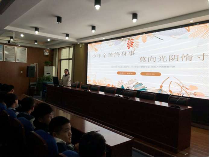 伴着淅沥沥的秋雨,2021级新生带着青春活力,和对知识的不懈追求,迈进了校门。由于今年疫情形势严峻,开学的时间延后了一个月,尽管这样也丝毫影响不了新生对校园生活的憧憬。为了让新生更快适应新的学习生活环境,顺利、平稳有效的实现从应试教育到职业学校的转变。10月9日至10日,我校会计专业举办了一系列的新生入学教育。相关专业教师及2021级会计专业新生参加了此次活动。