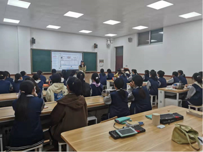 最后,在教师葛琳的带领下,新生班轮流参观了学校的财会实训室。
