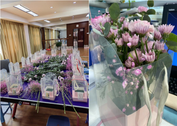 我系女教师积极参加活动(左)李琼老师插花作品(右)