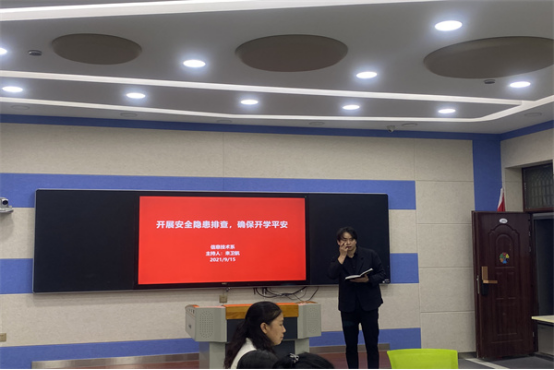 为加强安全管理,配合学校安全工作,确保校园消防安全,9月15日,信息技术系在电商工作室召开“开展安全隐患排查整治,确保开学平安”安全工作会,信息技术系全体成员参会。