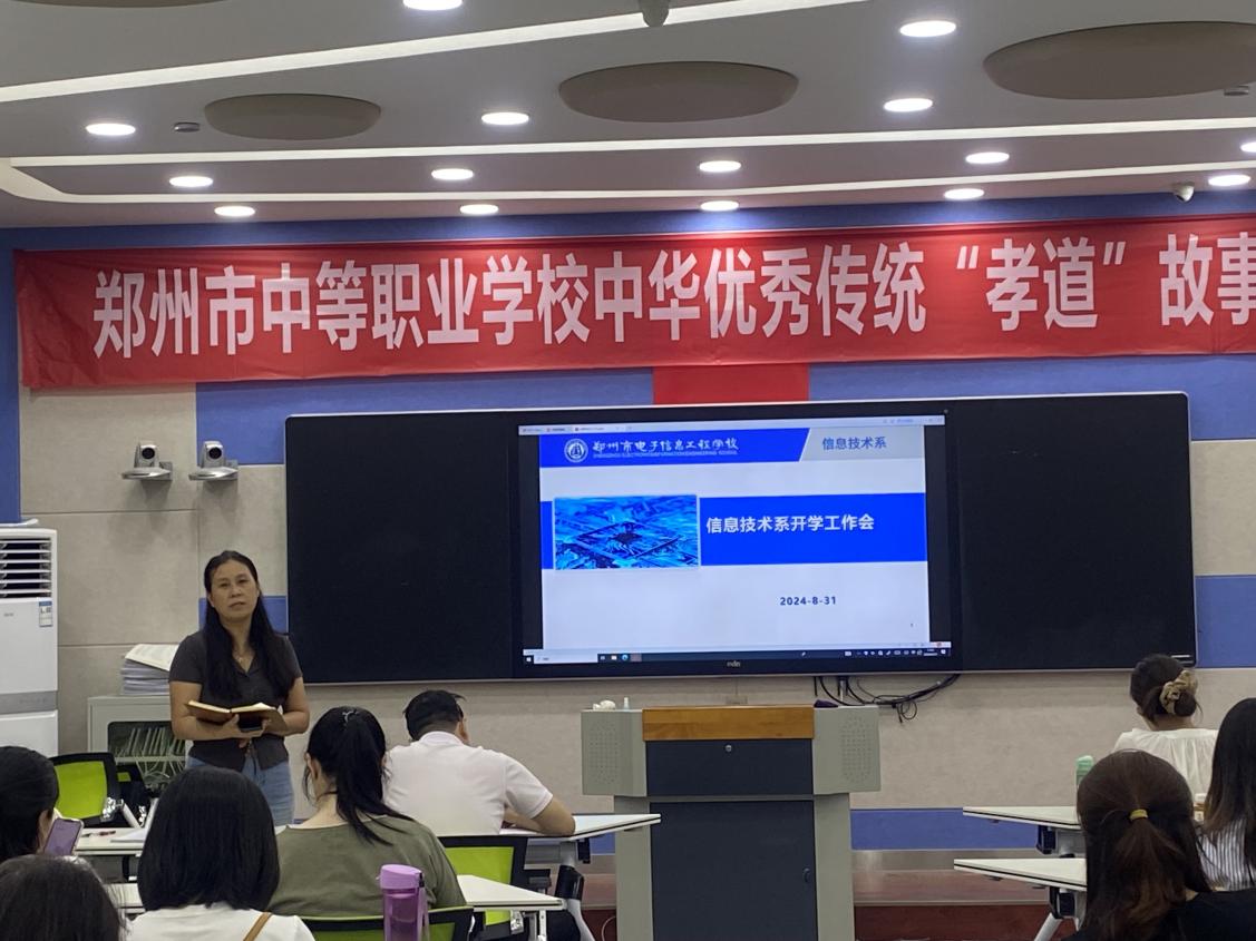 信息技术系于2024年8月31日下午15点在务本楼智慧教室召开新学期开学工作会,信息技术系教师及教学副校长李向伟参加此次会议,会议由信息技术系主任李喜英主持。