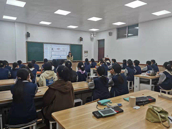 杨老师提前从各个班主任处了解了学生们最关心的专业学习方面问题,比如,会计专业有没有性别优势?数学不好能不能学会计?成本会计和财务会计有什么本质的区别。针对这些问题,杨老师先进行了答疑。然后再从专业课的开设、课程学习的内容、个人专业发展、省市竞赛情况以及校内的科技文化艺术节等相关内容进行了介绍,最后对我们专业的特色考证班进行了介绍,动员新生们也能在毕业前考取初级会计的证书。