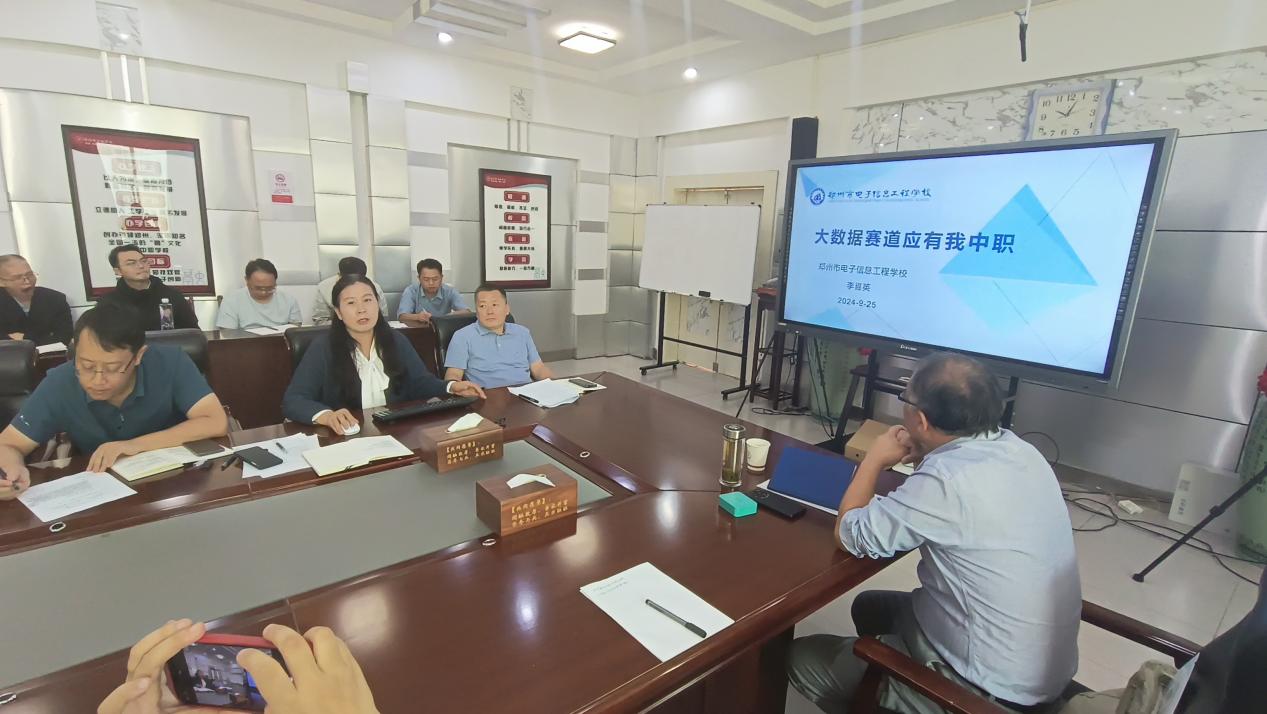 2024年9月25日上午在郑州市金融学校举办2024-2025学年上期计算机类中心教研组教研会,会议由郑州市教育科学规划与评估中心职业教育教学研究室王蒙主持,参加此次会议有30所学校计算机骨干教师参加。郑州市电子信息工程学校信息技术系主任李喜英应邀做“大数据赛道应有我中职”的专题报告。