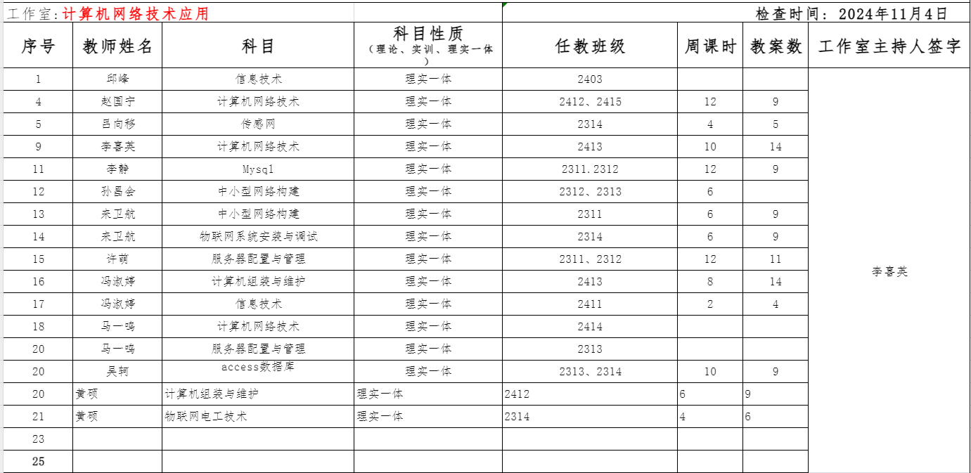 然而,在检查中也发现了一些问题。个别教师对待教案书写的态度十分敷衍,教案内容空洞,只是简单地罗列知识点,缺乏对教学方法和学生情况的考虑,甚至有的教案字迹潦草、格式混乱。对于这些书写应付的教师,李喜英主任严肃地提出了批评。她指出,教案是教学的重要依据,是教师对教学内容和教学方法进行系统设计的体现,关乎到教学质量和学生的学习效果,绝不能马虎对待。她要求这些教师将教案拿回去重新书写,希望他们能够认识到自己的问题,端正态度,认真完成教案的撰写,为后续的教学工作做好充分准备。这次教案检查给全系教师敲响了警钟,让大家深刻认识到教案书写的重要性。