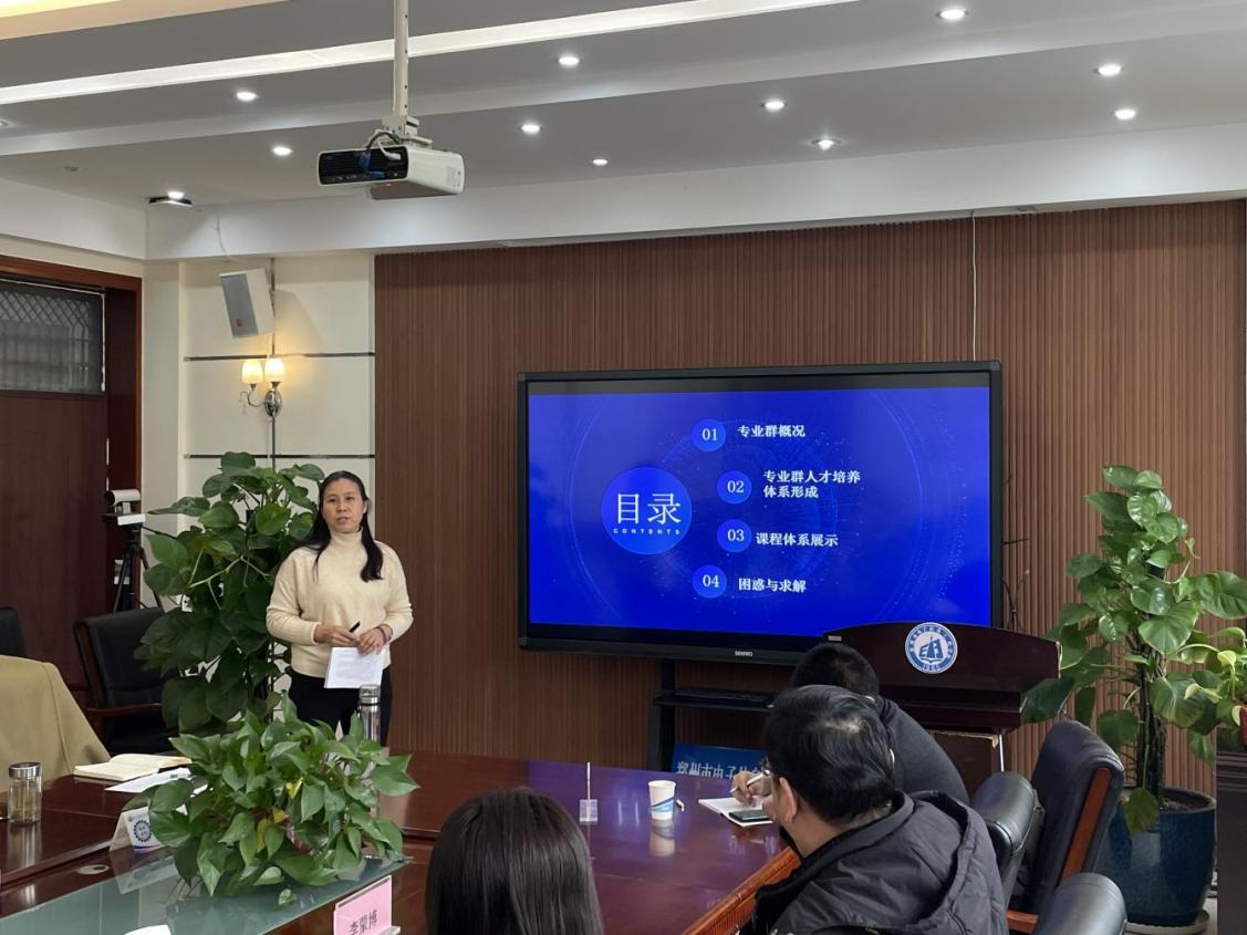 计算机网络专业群主持人李喜英汇报专业群建设情况